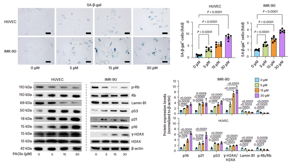 为探究健康人群中 PAGln 随年龄增加是否是促进体内细胞衰老的因素,研究人员随后在细胞模型中使用不同浓度的 PAGln进行处理。结果发现,长期 PAGln 干预会诱导细胞衰老。进一步动物实验,也发现PAGln处理可以在体内诱导细胞衰老。值得注意的是,从老年个体粪便中分离的具有产生PAA能力的细菌也可以在体内促进宿主细胞发生衰老。