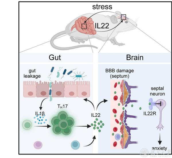 IL-1β-TH17-IL-22通路降低机体压力应激性焦虑行为的具体机制