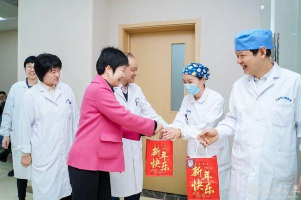 复旦大学校长、上海医学院院长金力一行前往中山医院进行新春慰问。金力校长亲切探望了辛勤工作的医务人员,对他们的辛勤付出表示衷心感谢,并送上新春祝福。