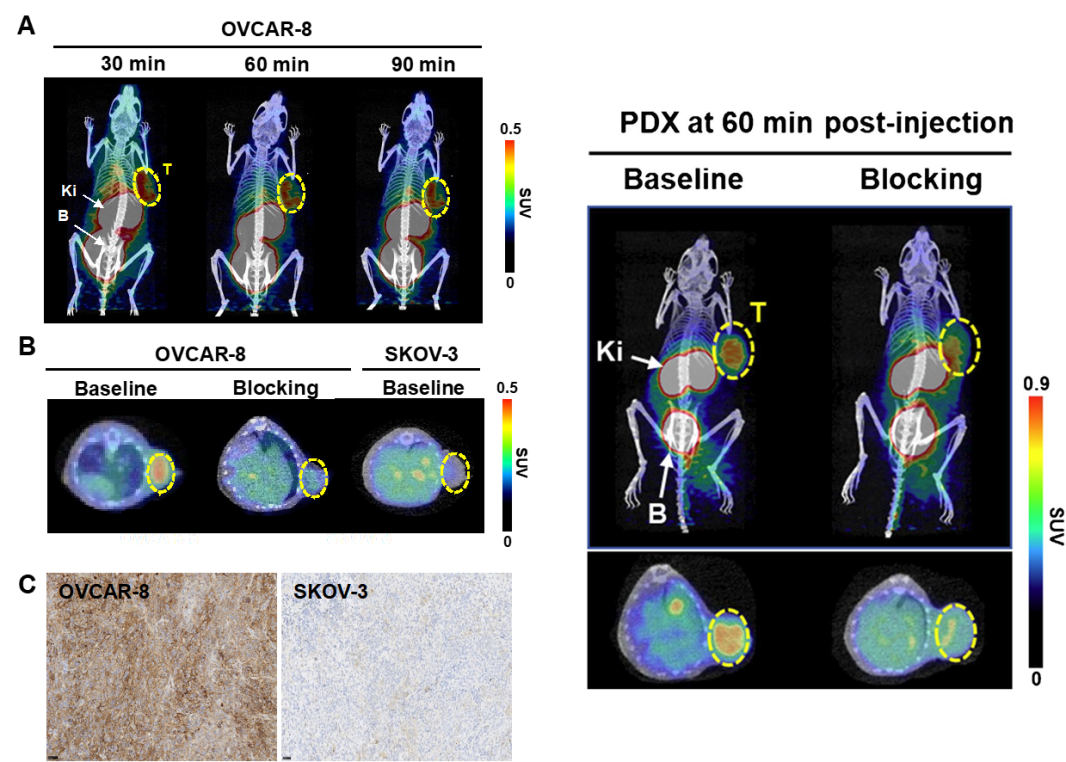 图2. 放射性探针在荷瘤小鼠OVCAR-8、SKOV-3、PDX模型中的评价