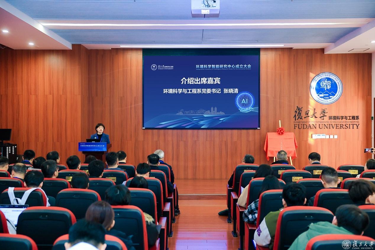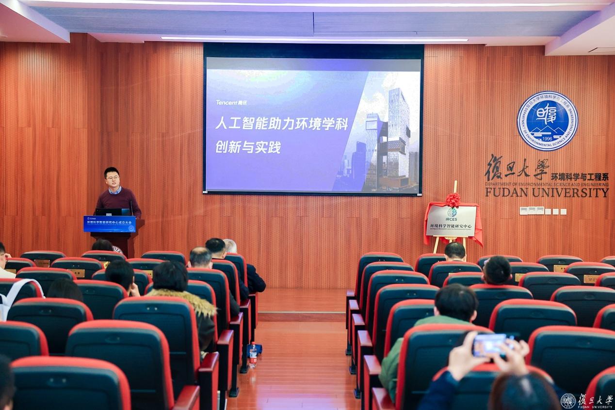 2024年12月17日,复旦大学环境科学智能研究中心成立大会在江湾校区环境科学楼隆重举行。复旦大学副校长姜育刚、中国科学技术大学俞汉青院士、上海市生态环境局科技与国际合作处处长施敏等领导专家和中国科学院重庆绿色智能技术研究院、上海交通大学、同济大学、华东师范大学、华东理工大学、上海师范大学等高校院所环境学科负责人和腾讯公司等企业界代表出席仪式。复旦大学环境科学与工程系党委书记张晓清主持大会。