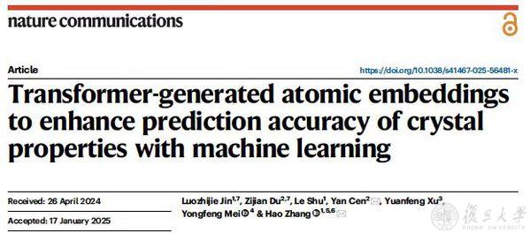 1月31日,信息科学与工程学院张浩副教授团队提出了创新的通用原子嵌入方法(ct-UAE),研究成果以“Transformer-generated atomic embeddings to enhance prediction accuracy of crystal properties with machine learning”为题在线发表于Nature Communications。