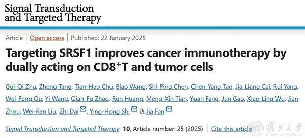 1月22日(当地时间),复旦大学附属中山医院樊嘉院士、史颖弘教授、代智教授团队,于国际期刊Signal Transduction and Targeted Therapy发表题为“Targeting SRSF1improves cancer immunotherapy by dually acting on CD8+T and tumor cells”的论文。该研究发现抑制SRSF1一方面能够全面提升CD8+T细胞的抗癌能力和促进代谢重编程,另一方面则能降低癌细胞的糖酵解能力,减缓它们的增殖速度,从而“一箭双雕”地助力现有免疫治疗。研究者们使用肝细胞癌(HCC)细胞展开实验,证实耗竭CD8+T细胞内的SRSF1表达水平显著高于细胞毒性CD8+T细胞,且SRSF1表达水平直接受耗竭相关转录因子NFATC2调控;同时,对PD-1抑制剂新辅助治疗无应答HCC患者的肿瘤组织内,SRSF1表达水平也显著较高,说明SRSF1的存在不利于抗肿瘤免疫。研究者们经筛选开发了一种新型小分子SRSF1抑制剂(TN2008),并证实了它单独使用的抑癌效应和联合PD-1抑制剂时的协同增效作用。