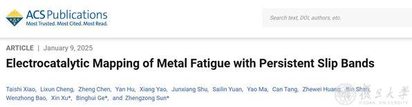这一研究成果以“Electrocatalytic Mapping of Metal Fatigue with Persistent Slip Bands”为题发表于美国化学会杂志JACS。