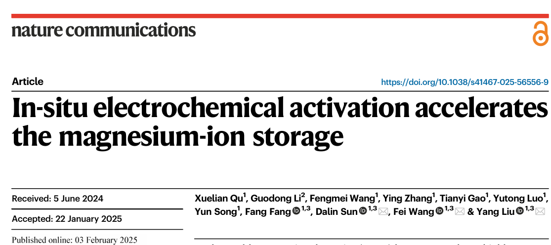 近日,材料科学系孙大林、王飞、刘洋团队提出原位电化学活化(ISEA)策略,显著提高了CuSe正极材料的储镁动力学,实现了RMBs优异的循环稳定性和倍率性能。相关成果以“In-situ electrochemical activation accelerates the magnesium-ion storage”为题发表在Nature Communications期刊上。