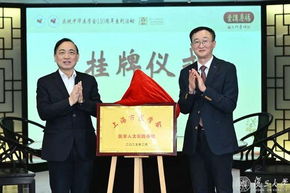 邬惊雷与袁正宏共同为上海市医学会医学人文实践基地揭牌。