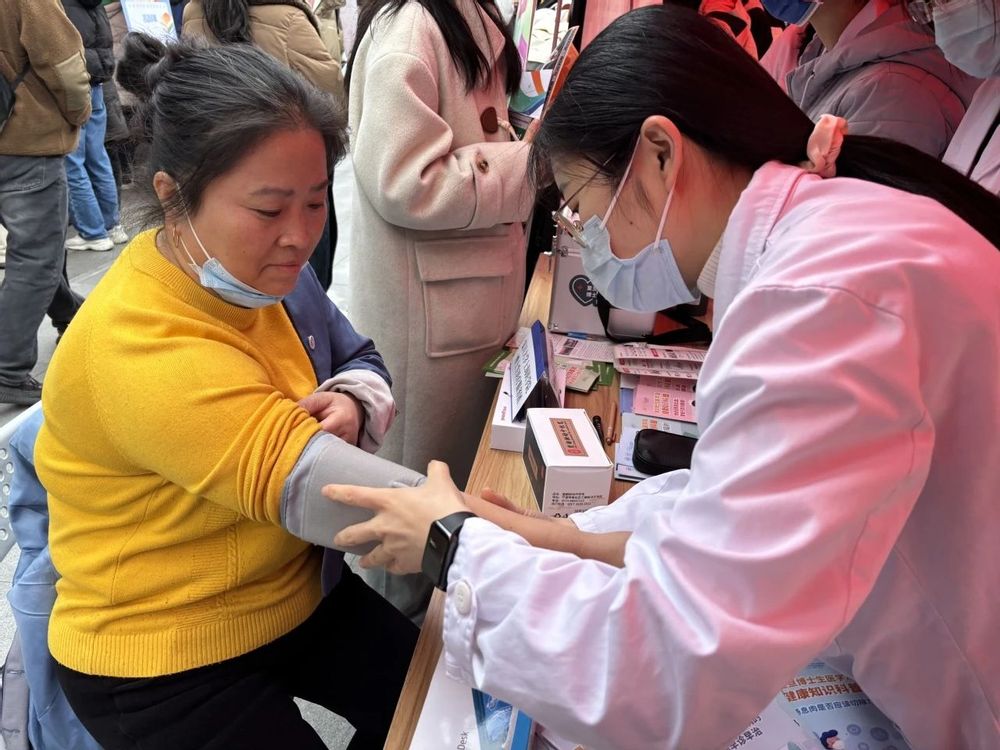 来自华山医院、中山医院、妇产科医院等多家附属医院的近10位博士生志愿者投入健康服务,本次志愿者涵盖神经内科、运动医学、皮肤科、儿科、妇产科、肿瘤科等多个临床科室。活动现场设置了健康咨询区、血压检测区等,为师生职工提供了关怀与服务。