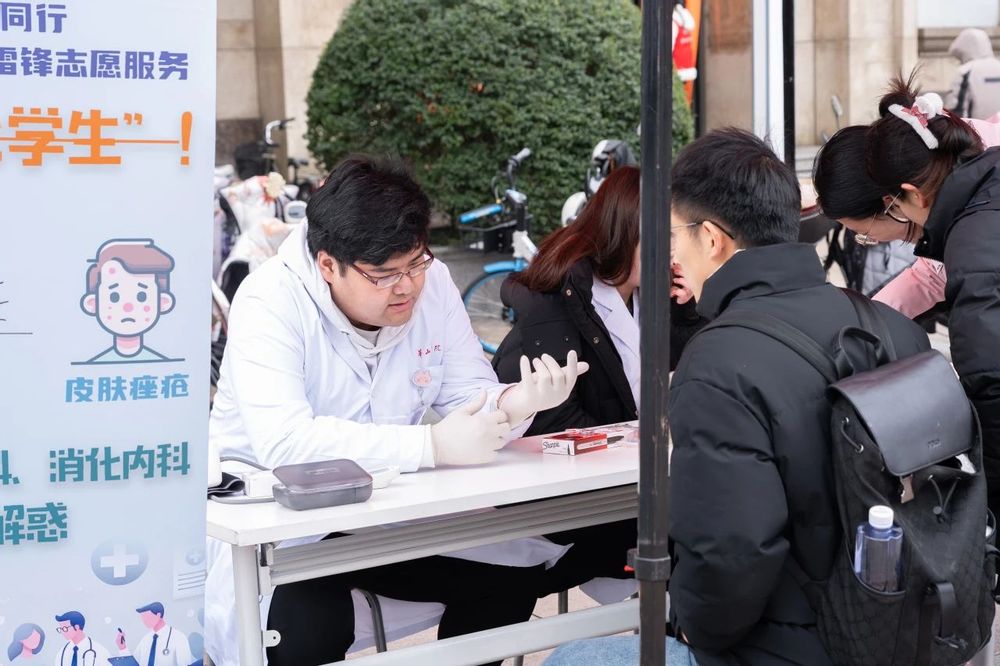 3月5日,复旦大学上海医学院博士生医疗服务团于在邯郸校区北区开展弘扬雷锋精神,践行医者初心主题医疗志愿服务活动,传承雷锋精神,发挥医学专业优势,为在校师生与职工提供健康服务,传播健康知识。