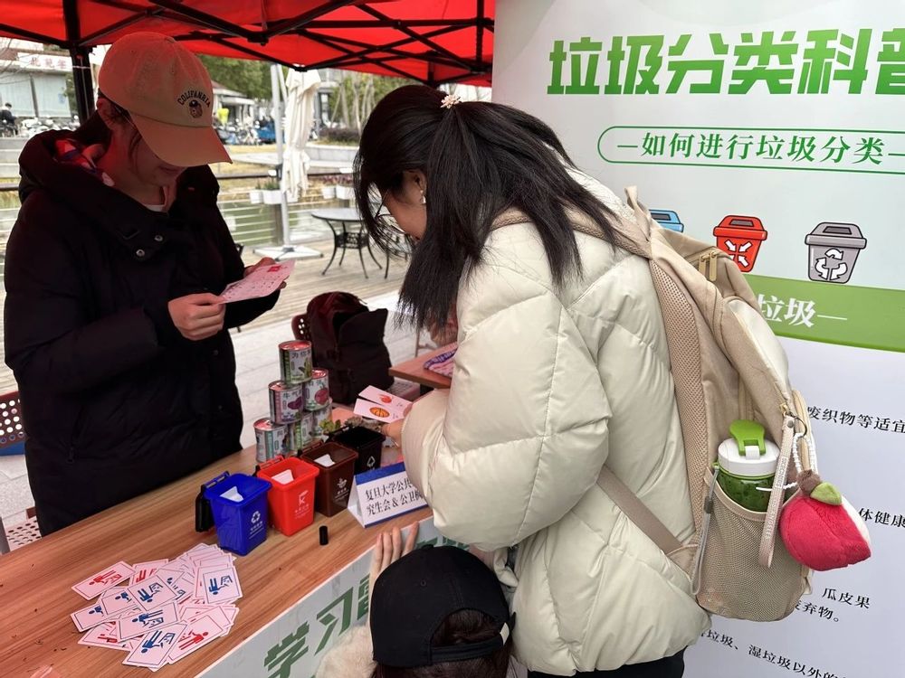 公共卫生学院研究生会与公卫枫帆青志队共同参与第62个“学雷锋日”线下志愿文化集市活动,于3月5日中午在邯郸校区北区食堂出入口广场举办了一场以“绿色校园,环保同行”为主题的志愿服务活动。活动通过垃圾分类科普、互动游戏及环保承诺签名等形式,引导师生们在实践中感受雷锋精神的时代内涵,共同营造整洁、绿色、和谐的校园氛围。