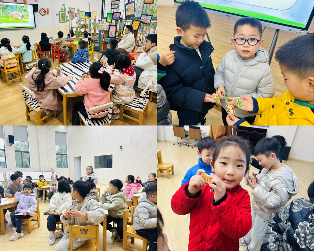 在讲解预防春季传染病高发的措施时,展示了许多可爱的贴画,并与小朋友们互动,进行竞猜。