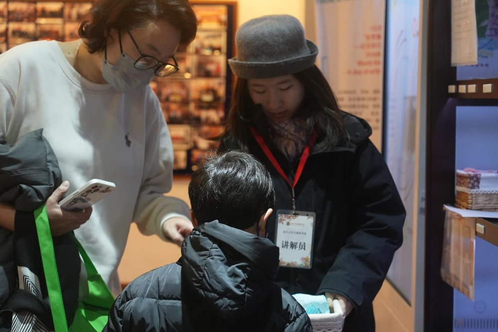志愿者在给小朋友讲解