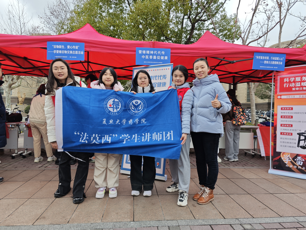 为弘扬雷锋精神,让同学们沉浸式体验传统文化魅力,助力健康生活,药学院“法莫西”学生讲师团于3月5日中午在江湾校区食堂门口开展了“雷锋精神代代传,中医香囊促健康”志愿服务活动。讲师团指导教师康云、讲师团讲师参与了本次活动。