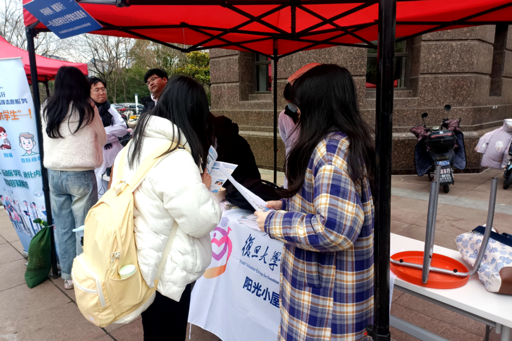 3月5日,儿科医院阳光小屋青年服务团在江湾校区进行宣传和募捐活动,志愿者们热情地为江湾校区的师生们介绍阳光小屋青年服务团,讲述特色病房陪伴、科普讲堂、募捐义卖等志愿活动,邀请他们加入服务团一起来帮助儿科医院的白血病患者。