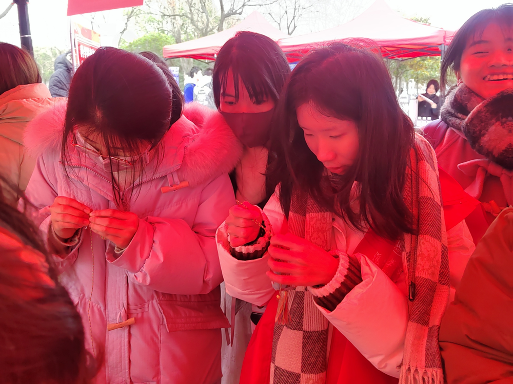 志愿者们指导大家制作香囊