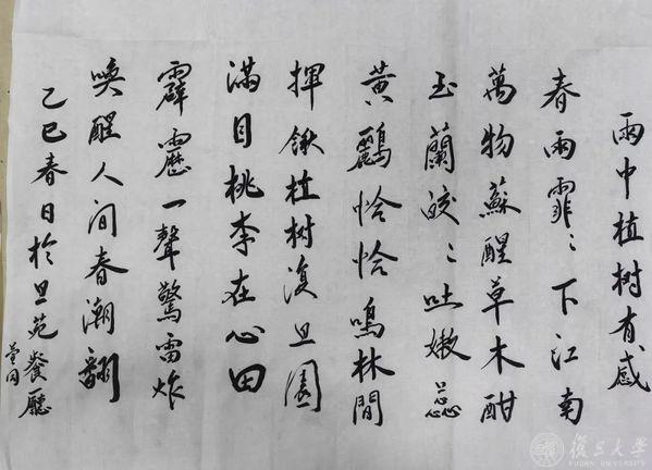挥锹植树复旦园,满目桃李在心田。