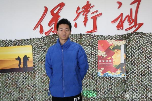 2023级护理学院本科生赵俊龙从小就对部队生活充满向往,期待自己身着军装、手提钢枪。