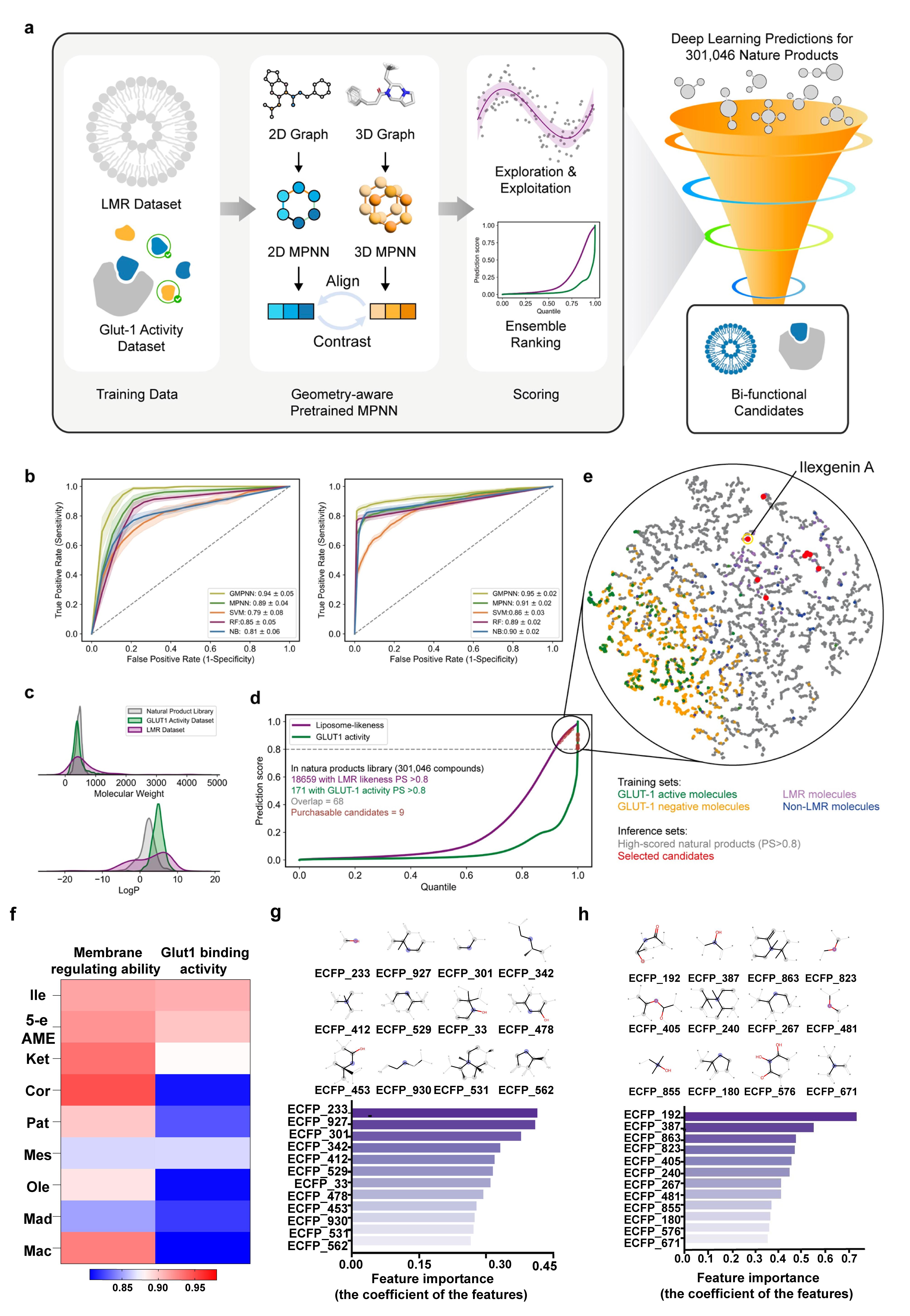 图1:GMPNN算法模型构建及候选双功能天然产物挖掘