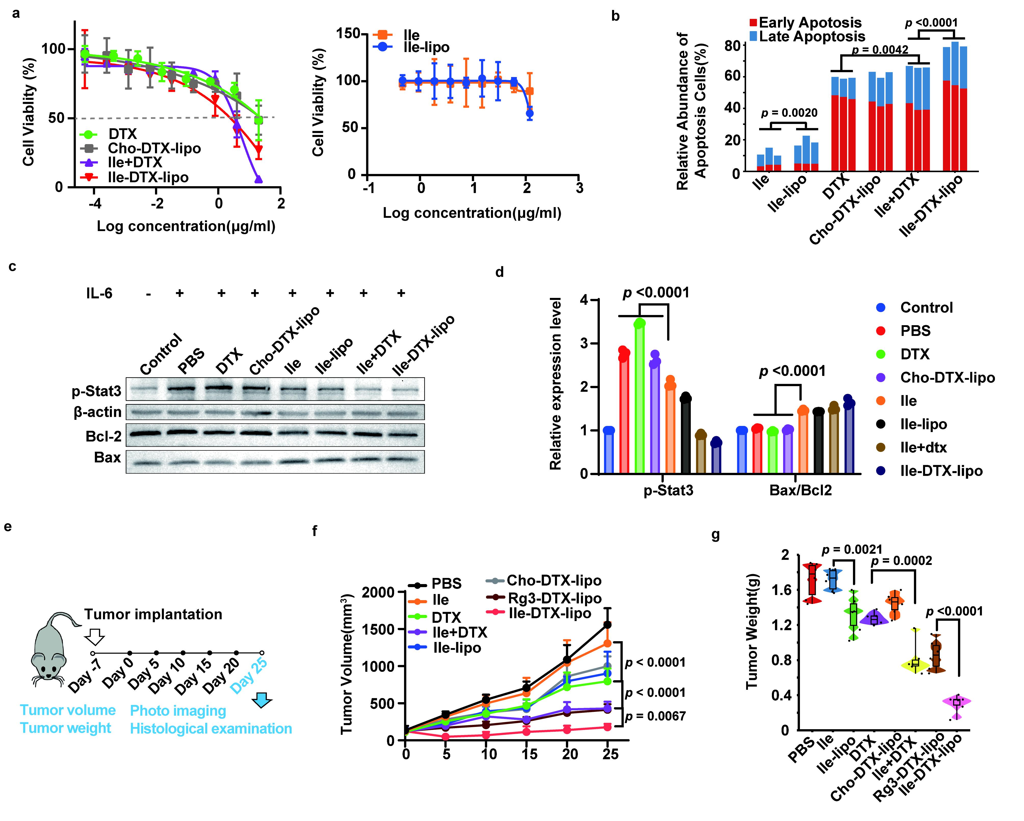 图4 Ile-DTX-lipo的抗肿瘤作用