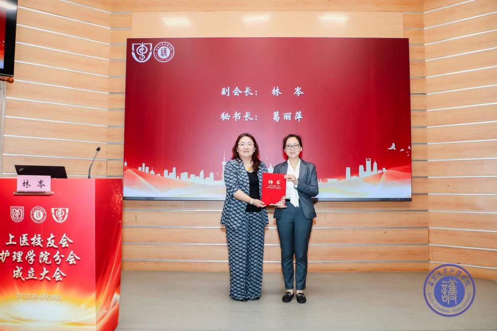 上医校友会秘书长许晓茵为常务理事和理事颁发聘书