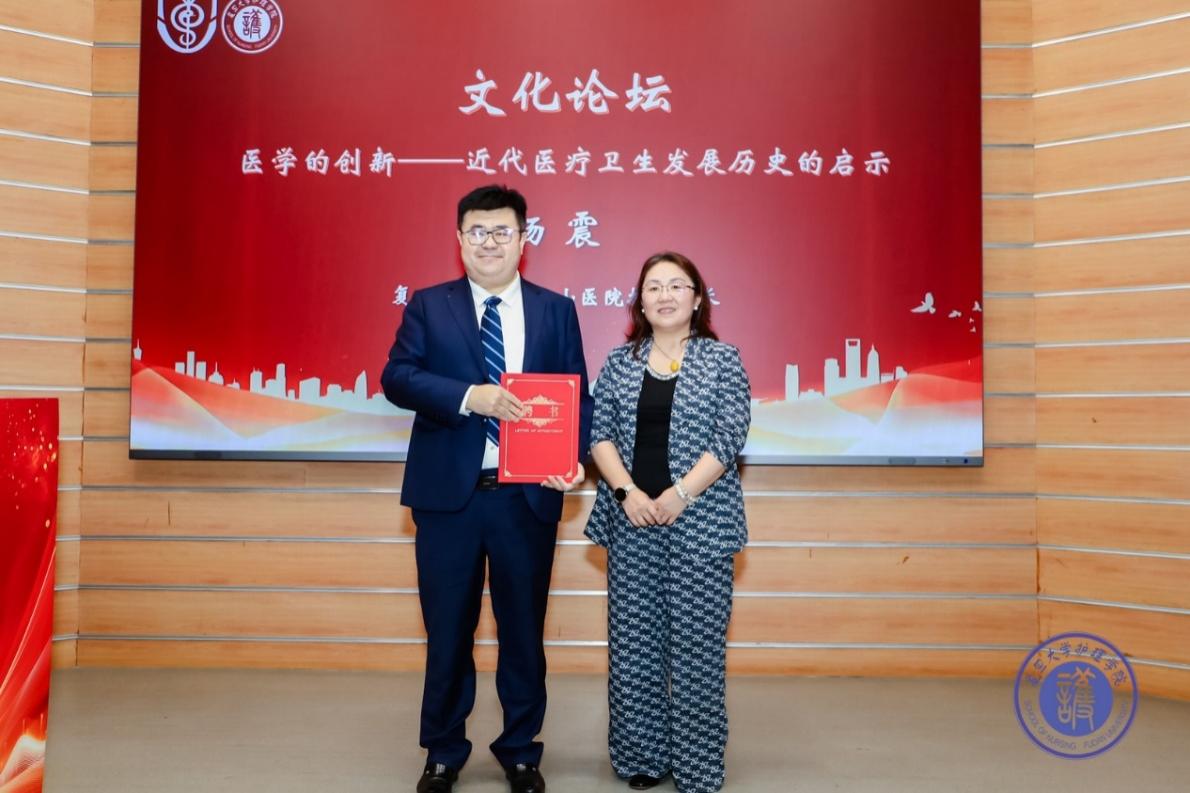 成立仪式后,复旦大学附属金山医院执行院长、护理学院“三全育人”导师杨震带来“医学的创新——近代医疗卫生发展启示”主题报告。通过丰富的历史资料、珍贵的档案照片和生动的案例故事,杨震系统梳理了护理学从南丁格尔时代到现代专科护理的演变历程。深刻诠释了护理在医疗发展中的重要作用与人文价值。整场讲座既有历史的厚重感,又充满对未来的前瞻性思考,在场听众不仅感受到了医学技术的迭代,更感受到了人文关怀的传承。