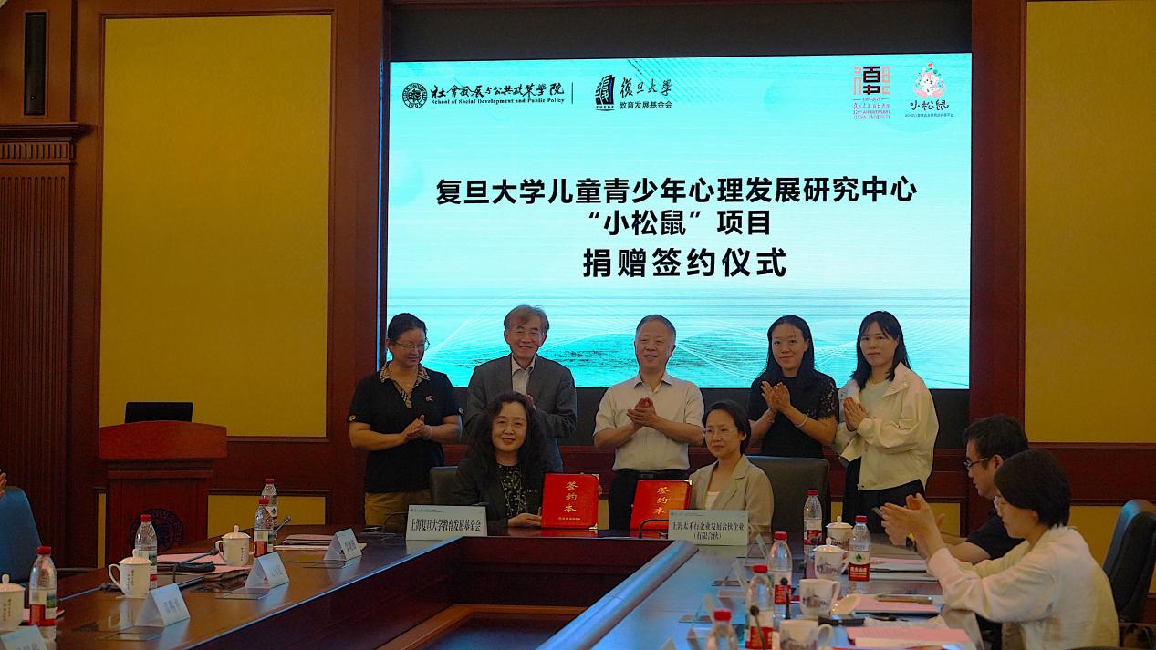 6月20日上午,复旦大学“小松鼠”项目第二期捐赠签约仪式暨黄浦区“小松鼠”工作室启动仪式在复旦大学吕志和楼205会议室举行。