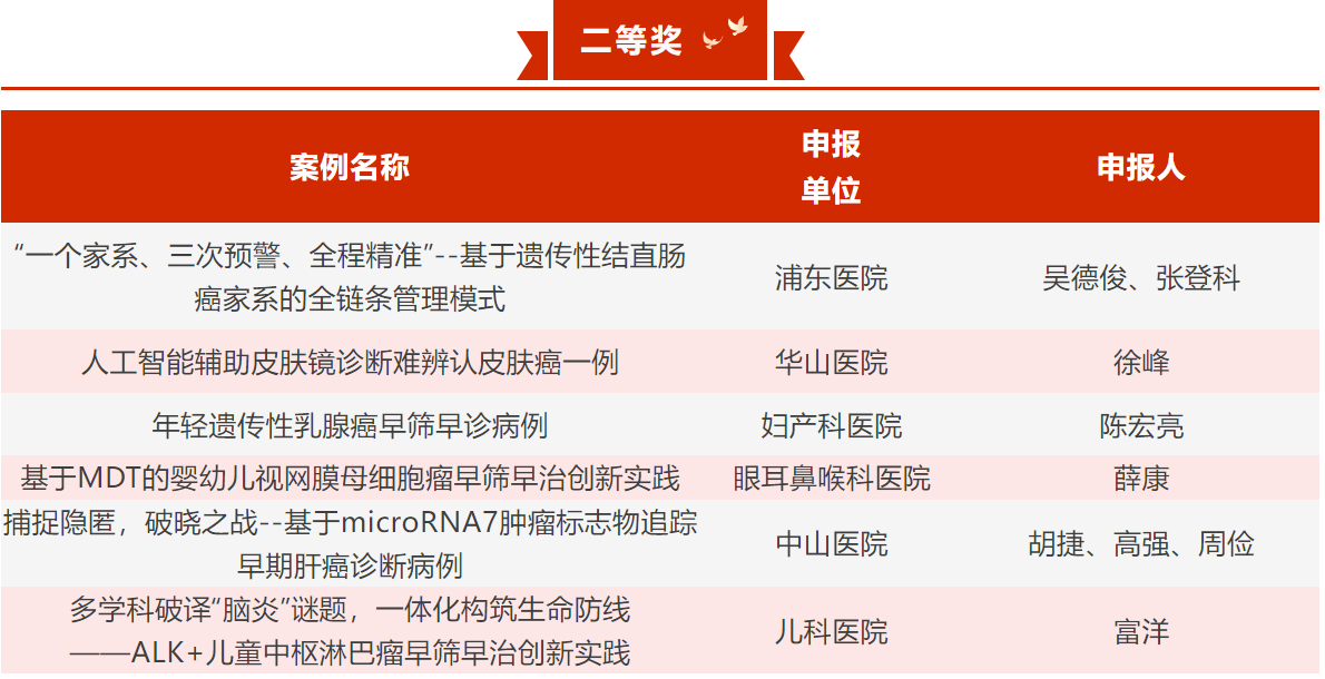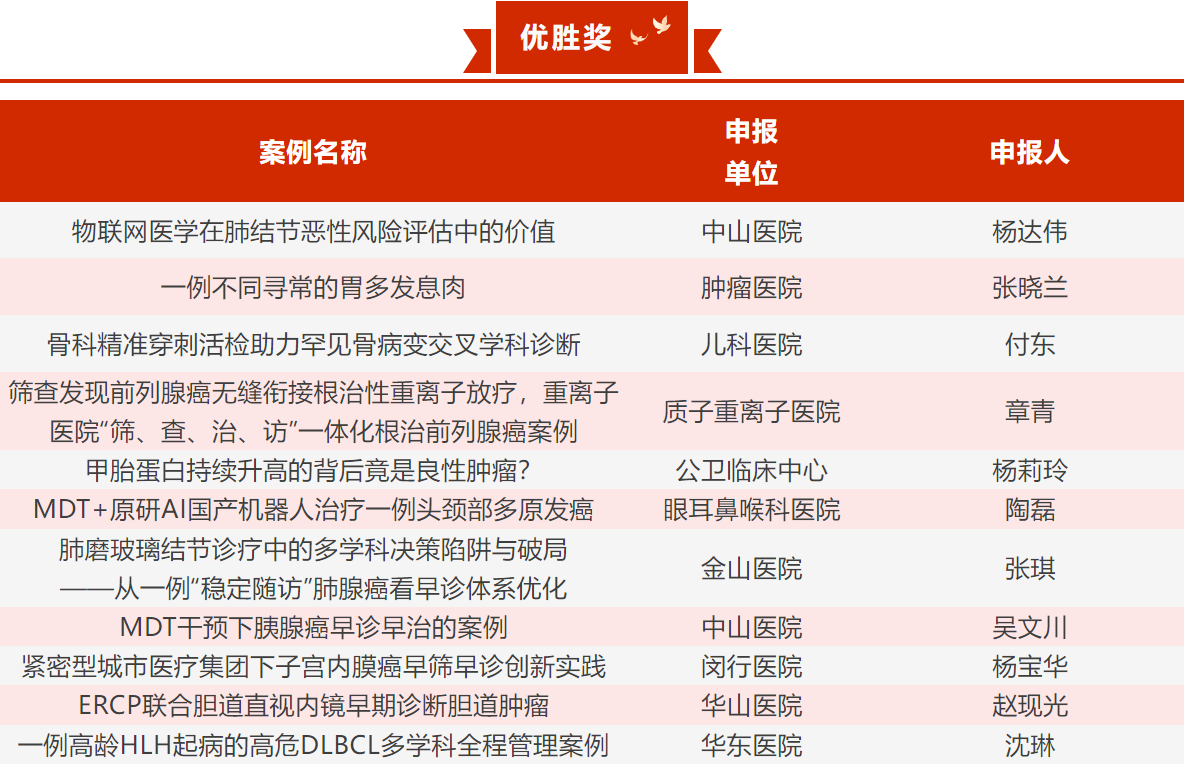 为进一步发挥复旦上医“国家慢病健康管理-癌症筛查与早诊培训项目”上海市理论培训基地的示范引领作用,推广附属医院癌症筛查与早诊早治的优秀经验,提升医疗人才癌症筛查与早诊能力,近日,复旦上医创新开展“癌症筛查与早诊早治”优秀案例评选活动。经初评推荐、书面、现场多轮评审,最终产生一等奖3个、二等奖6个、三等奖10个、优胜奖11个。