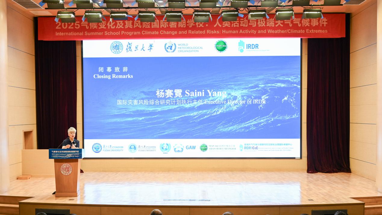 杨赛霓回顾了她在暑期学校期间的两次到访——一次授课,一次担任Mini-project评审。尽管时间短暂,她仍深切感受到学员们从“聆听者”成长为“问题解决者”的蜕变,并对此表示由衷欣喜。她特别感谢复旦大学IRDR国际卓越中心在青年人才培养方面做出的突出贡献。她指出,IRDR始终将青年科学家置于发展战略的核心位置,未来将与复旦大学进一步深化合作:一方面,扩大国际招生规模,汇聚更具多样性的全球师资力量;另一方面,增设“青年科学家领导力”专项模块,尤其关注女性科研人员的成长与赋能。她寄语学员——请把在这里点燃的协作火种带回自己的国家,成为推动韧性社会建设的引领者!