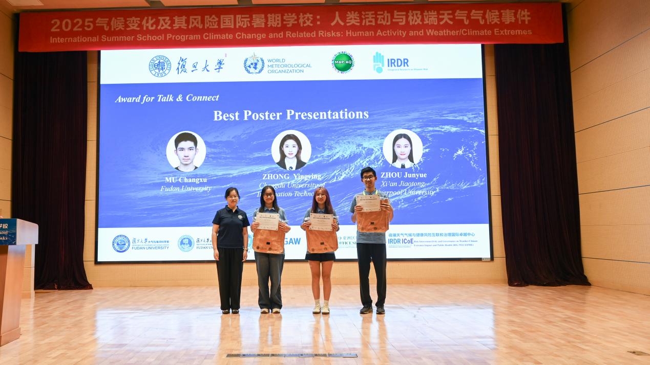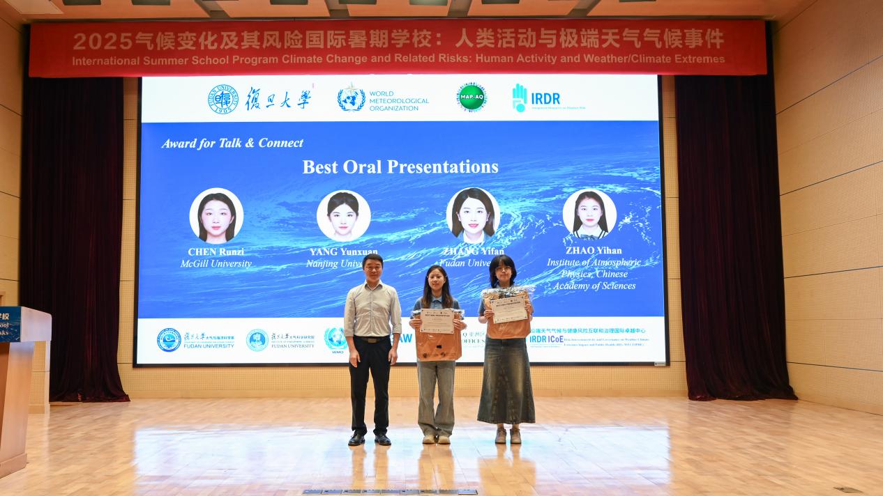 复旦大学研究生院副院长曾小庆、大气与海洋科学系党委书记蔡樱华、大气科学研究院副院长吴志伟和复旦IRDR国际卓越中心执行主任汤绪教授分别颁发“最佳口头报告奖”、“最佳墙报奖”、“口头报告参与奖”和“墙报参与奖”。