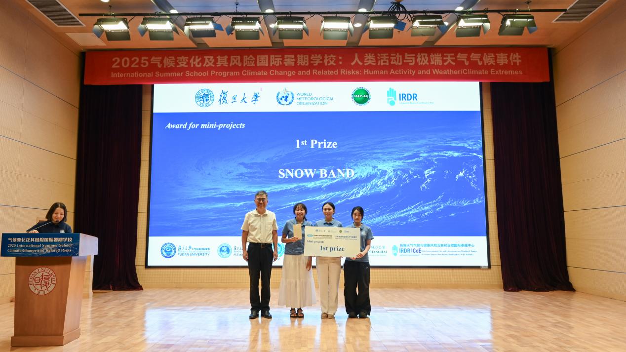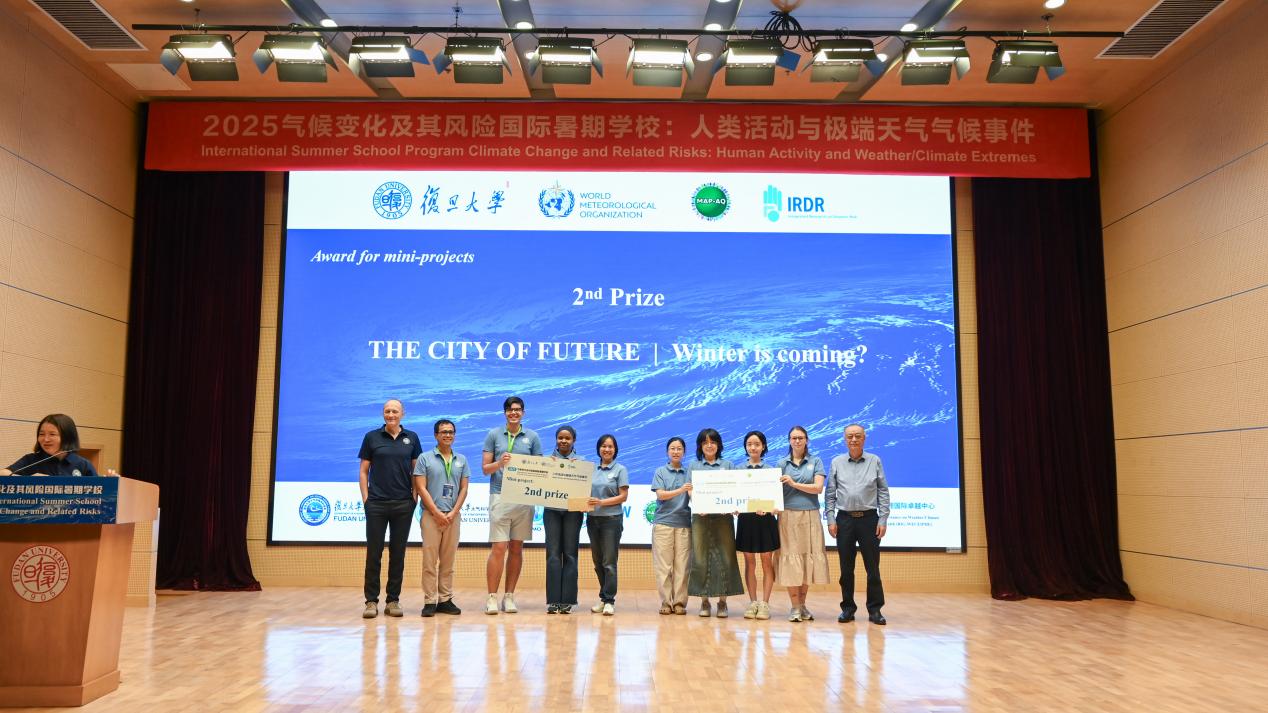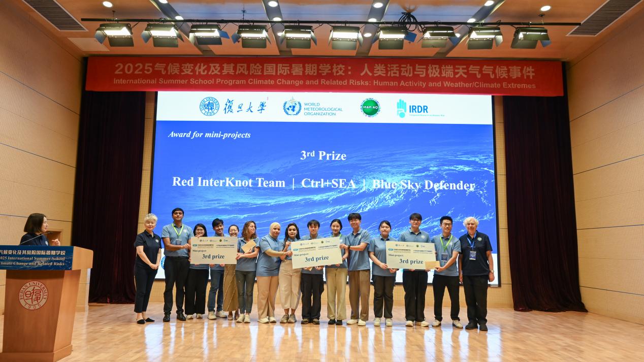 复旦大学副校长周磊,WMO全球大气观测计划(GAW)负责人Paolo Laj、复旦大学大气科学院院长张人禾院士,MAP-AQ国际计划联合主席Guy Brasseur、IRDR执行主任杨赛霓分别为mini-project的一等奖、二等奖、三等奖团队颁奖。