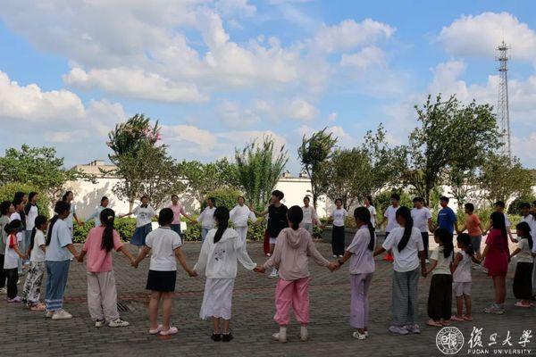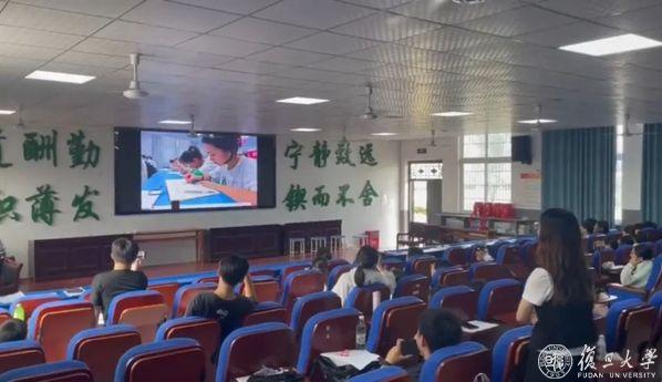 转眼,来到告别时刻。支教结束仪式上,队员们精心编排的情景剧《光从复旦来:少年启航记》拉开离别序幕。剧中融合了当地“花鼓灯”非遗文化元素和特产西瓜,几乎全员登台亮相,用稚嫩的表演重现十天来的学习与收获。