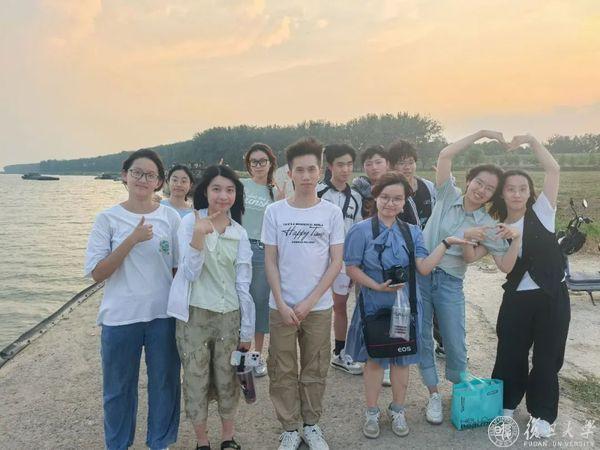 临别之际,有学生特意从家里抱来三个沉甸甸的大西瓜,送给支教队员——这是来自淳朴乡情最甜蜜的回赠。夕阳西下,两位不舍离去的小朋友们跟随队员们一同来到附近的淮河大坝。堤坝内侧绿茵茵的草坡上,羊群在埋头吃草,外侧是宽阔辽远的淮河河道,队员们第一次见到地理书上常听说的南北分界线之一。夏日的晚风微拂,夕阳将天边染成柔和的金黄。队员们与小朋友们在长堤上并肩踱步,他们明亮的眼睛里,倒映着淮河的波光。