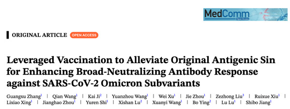 2025年7月7日,上海市重大传染病和生物安全研究院/复旦大学基础医学院的姜世勃、陆路团队联合苏州艾博生物科技有限公司在MedComm上发表了题为“Leveraged Vaccination to Alleviate Original Antigenic Sin for Enhancing Broad-Neutralizing Antibody Response against SARS-CoV-2 Omicron Subvariants”的研究论文。该研究为未来应对快速变异病毒提供了重要的疫苗开发和免疫策略新思路。