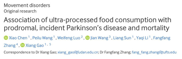 高翔团队研究发现超加工食品摄入或增加帕金森病发病及相关死亡风险