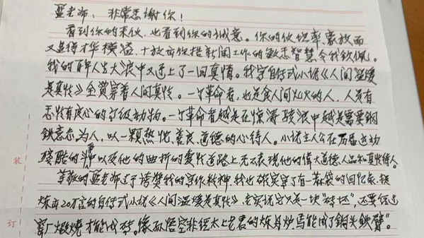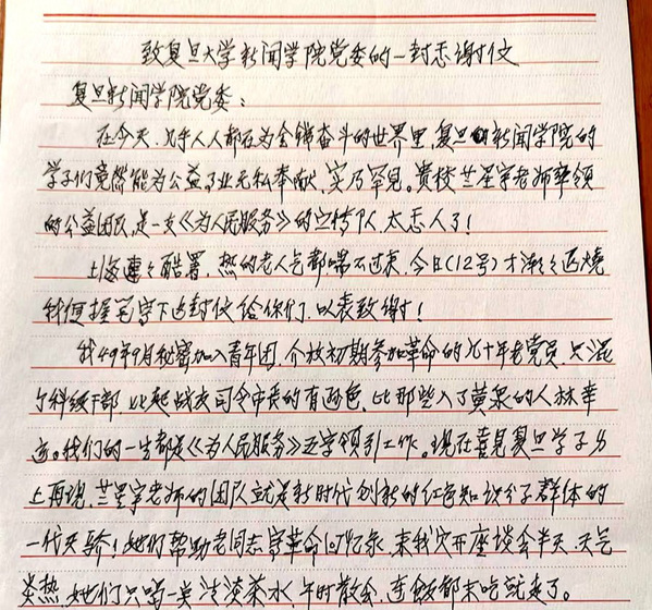 “爷爷的来信开启了我和同学们的一场奇遇。”课程主讲老师、复旦新闻学院副研究员蓝星宇觉得,“回声”是课堂上的一颗“种子”,它悄悄发芽生长,经媒体报道后,如同蒲公英般意外飘落到了这位耄耋老人的面前。