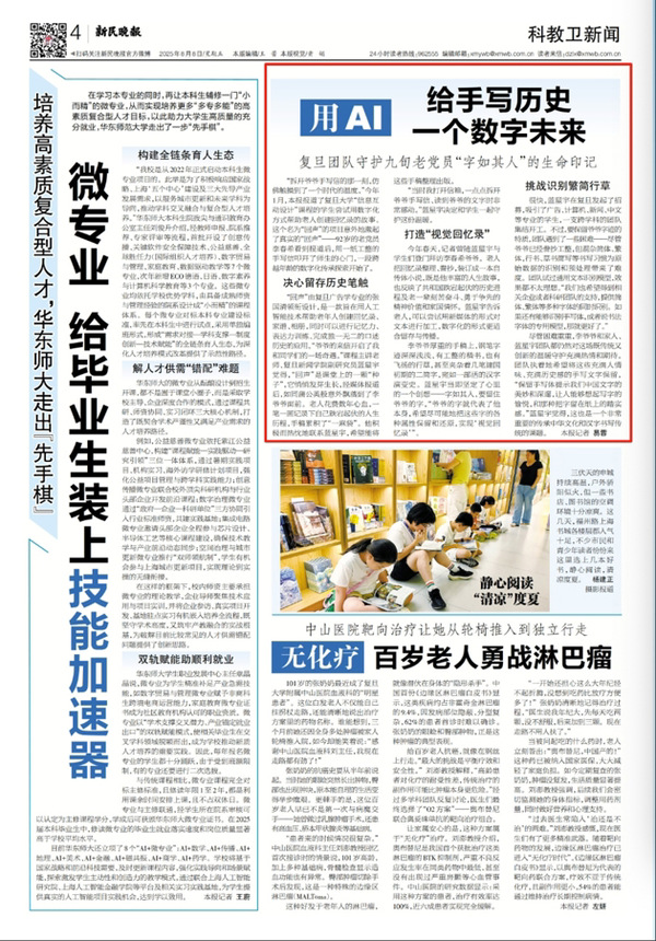 “拆开爷爷手写信的那一刻,仿佛触摸到了一个时代的温度。”今年1月,本报报道了复旦大学“信息互动设计”课程的学生尝试用数字化方式帮助老人创建回忆录的暖心故事。这个名为“回声”的项目,意外地在92岁老党员李春希的生命中激起了真实的“回声”——老人看到报道后,用一纸工整的手写信叩开了师生的心门,由此,一段跨越年龄的数字化传承探索开始了。