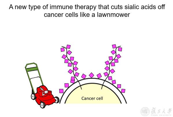 为解决这一问题,贝尔托齐所带领的团队决定从癌细胞表面的的唾液酸下手。团队研发出一种专门针对癌症的抗体药物,能像除草机一样把癌细胞表面的唾液酸清除干净。失去“伪装”的癌细胞,更容易被免疫细胞识别和杀死。