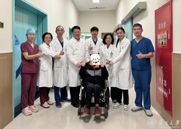 复旦大学附属中山医院徐辉雄(左四)团队与90岁高龄患者