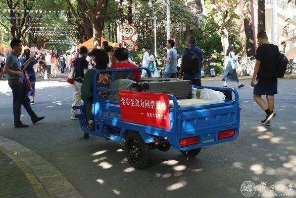 “哪里有需要,哪里就有志愿者。”校园内,在各个行李领取点,“装备齐全”的志愿者们有条不紊。他们骑着三轮车、推着小车,为新生们指引路线、运送行李,目光所及之处皆有“红T恤”亲切相伴,初来乍到的陌生与拘谨在欢声笑语中悄然消融。