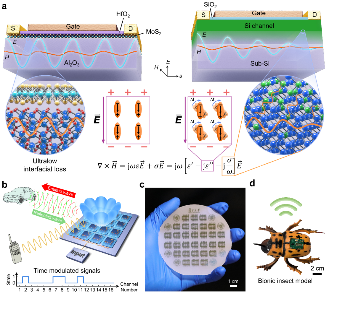 然而,传统硅基射频芯片受限于体材料的梯度掺杂分布及大量界面态陷阱,在射频应用中面临高损耗、强干扰和低效率等关键挑战。相比之下,具有原子级平整和天然钝化表面的二维半导体,为发展低损耗、高能效射频电路开辟了极具潜力的新方向。