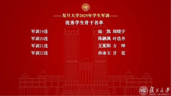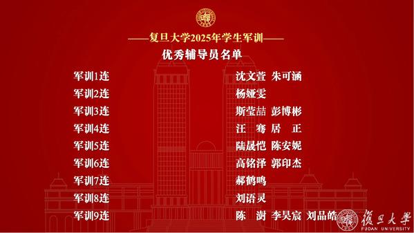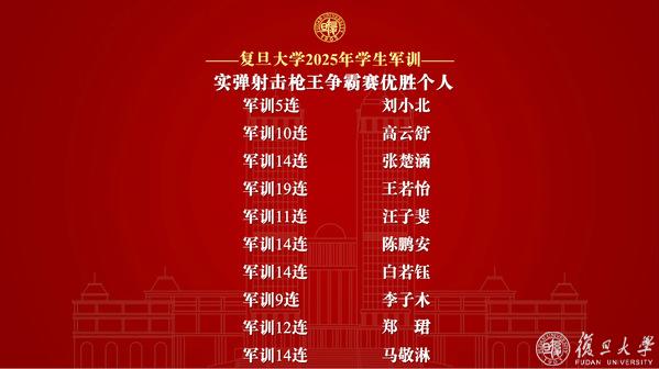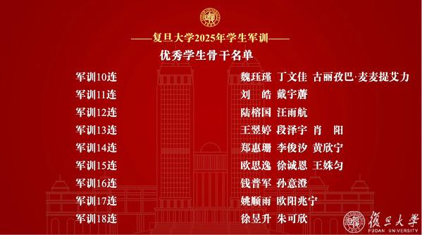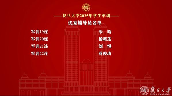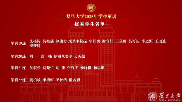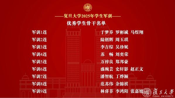 复旦大学2025年学生军训先进个人表彰名单