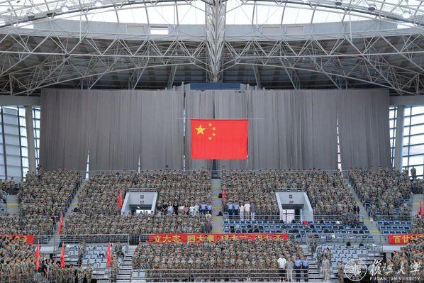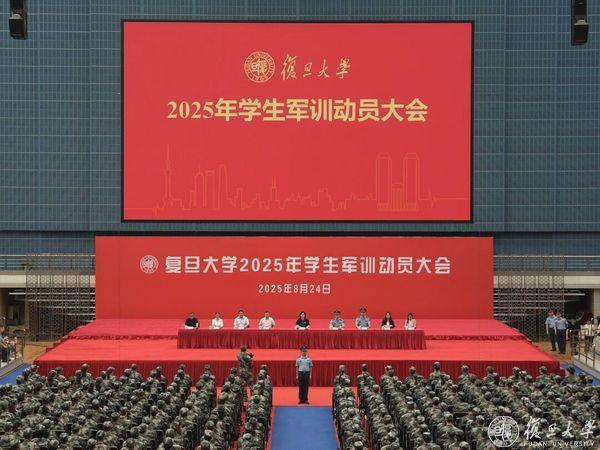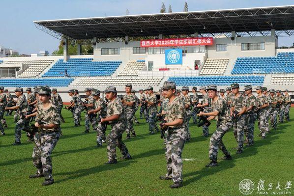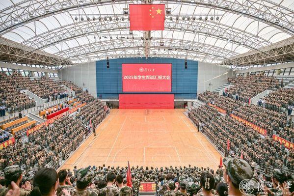 9月5日,复旦大学2025年学生军训汇报大会在正大体育馆举行。22支连队意气风发,斗志昂扬,接受军训检阅。