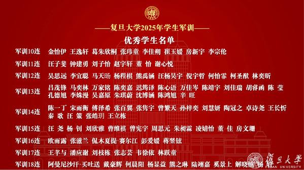 复旦大学2025年学生军训先进集体表彰名单