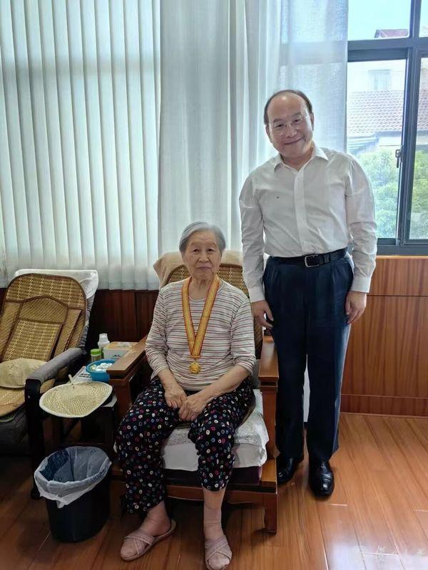 近日,华山医院党委书记郑宁上门走访慰问抗战离休干部、华山医院病理科创始人张罗教授,向她致以崇高敬意并送上“中国人民抗日战争胜利80周年”纪念章。