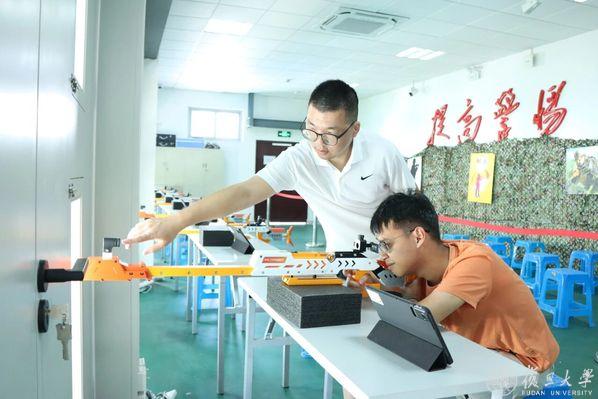 在北区武装部射击场,25级生物医学工程的林泽霖正在体验光感步枪射击。这是本学期新开设的《射击(一)》课程的内容。“选择这门我想探索没有接触过的体育运动,也想在学习射击时培养自己的专注力和耐心。”