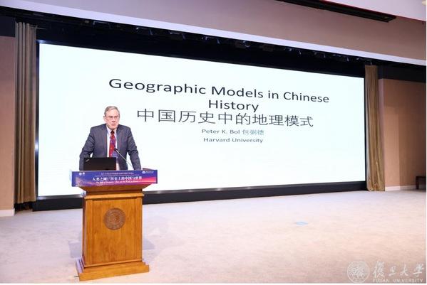 包弼德教授以《中国历史中的地理模式》为题作主题分享。他首先对与复旦大学共建的中国历史地理信息系统(CHGIS)给予了高度肯定,随后,分别对“自然地理与行政地理的对比”“郡县制度与封建制度的对比”“中国(中央之国)与夷狄(部落民族)的对比”“中国内部:南北对比”“精英阶层的自我观念:国家精英与地方精英的对比”这五个方面进行了具体阐释,并在最后通过地理志体例的变化揭示了古代地理书写从行政地理(Administrative Geographies)到文化地理(Cultural Geographies)这一深刻的范式转变。