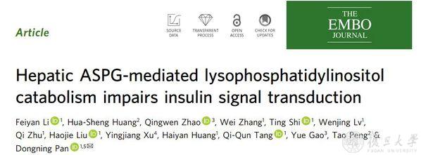 潘东宁团队发现肝ASPG介导的溶血磷脂酰肌醇分解代谢损害胰岛素信号转导