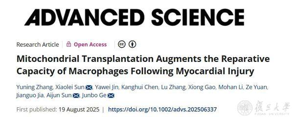 2025 年 8 月 19 日,复旦大学附属中山医院心内科葛均波、孙爱军团队在《先进科学》(Advanced Science)发表题为“Mitochondrial Transplantation Augments the Reparative Capacity of Macrophages Following Myocardial Injury”的研究。开发了“线粒体移植巨噬细胞(Mito-T-Macros, MTMs)”这一新型细胞工程技术,即通过将健康外源性线粒体导入巨噬细胞,形成具有增强代谢活性和修复功能的 MTMs,线粒体转移通过代谢重编程和减轻氧化应激,改善了心肌梗死后的心脏恢复进展。本研究证明了巨噬细胞迁移疗法修复心肌梗死后的心肌损伤其潜力和可行性。