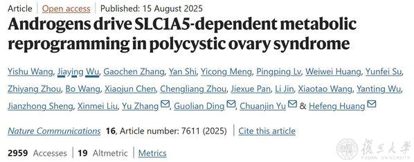 黄荷凤团队研究揭示雄激素驱动SLC1A5依赖的PCOS代谢重编程新机制