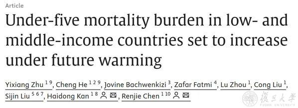 陈仁杰、阚海东团队揭示全球气候变暖背景下中低收入国家儿童死亡负担的演变规律