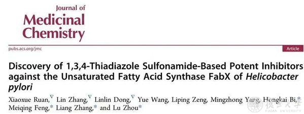 2025年8月14日,复旦大学药学院周璐团队联合上海交通大学张良团队、复旦大学冯美卿团队、南京医科大学/海南医科大学毕洪凯团队在《药物化学杂志》(Journal of Medicinal Chemistry)上发表题为“Discovery of 1,3,4-Thiadiazole Sulfonamide-Based Potent Inhibitors against the Unsaturated Fatty Acid Synthase FabX of Helicobacter pylori”的研究性论文,针对特异性抗幽门螺杆菌新靶标脂酰基脱氢酶FabX开发了一系列新型抑制剂。